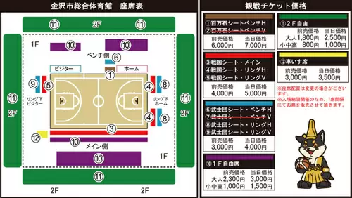 ![]() 金沢武士団オンラインチケット ※指定席、自由席全券種販売します。 ※座席指定が可能です。 | ![]() チケットぴあ ※1F自由席、2F自由券のみ |